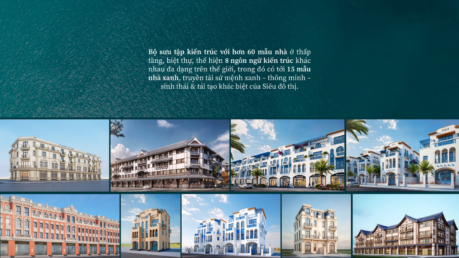 Vinhomes Cần Giờ cung cấp bộ sưu tập hơn 60 mẫu nhà ở thấp tầng đa ngôn ngữ kiến trúc