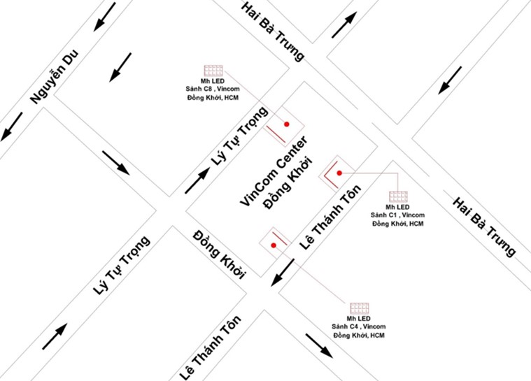 - Quý khách dễ dàng di chuyển trên đường hướng Lê Thánh Tôn đến 72A Lê Thánh Tôn, Vincom Đồng Khởi nằm phía bên trái của bạn.